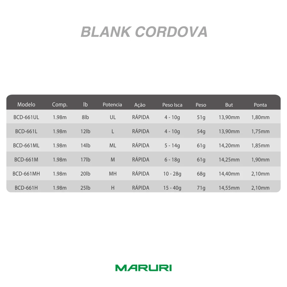 174774 | Vr BLANK Cordova - 08lb #BCD-661UL - 1.98m