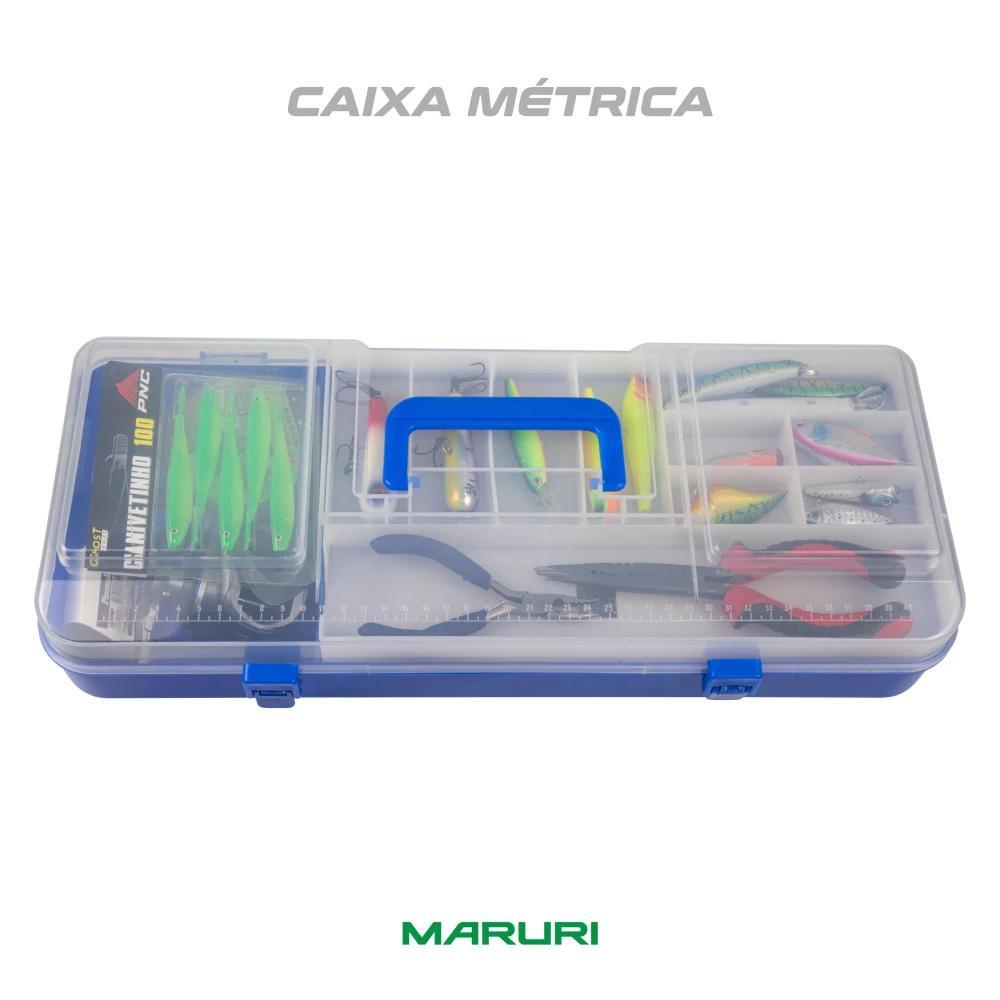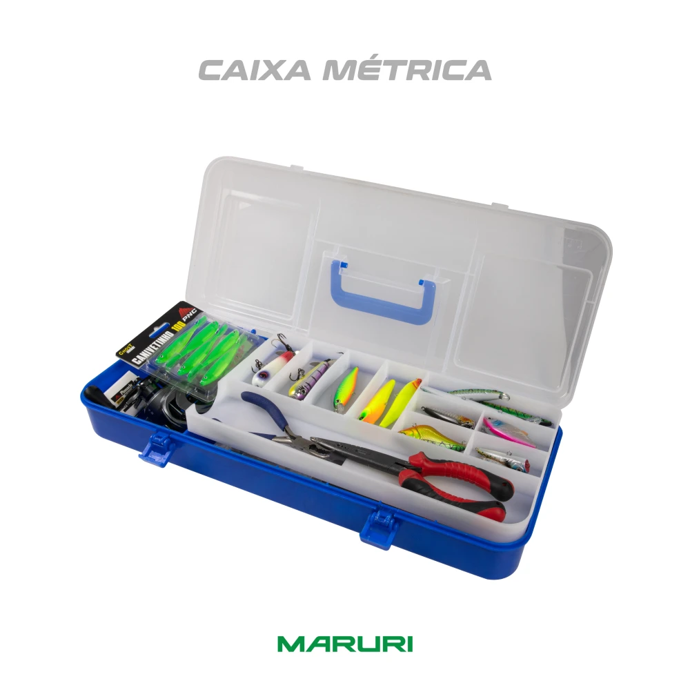 Descrição: Caixa porta‑pesca MÉTRICA, projetada para organizar, transportar e proteger seus equipamentos com praticidade e segurança. Fabricada em ABS resistente, alia durabilidade e excelente acabamento.