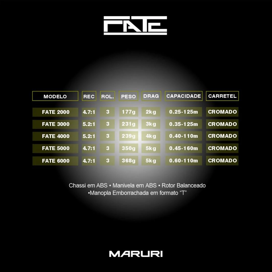 O molinete FATE tem um excelente custo X benefício, com estrutura em grafite, arco em alumínio e eixo em aço inox, carretel cromado para facilitar a saída de linha e melhorar o arremesso,