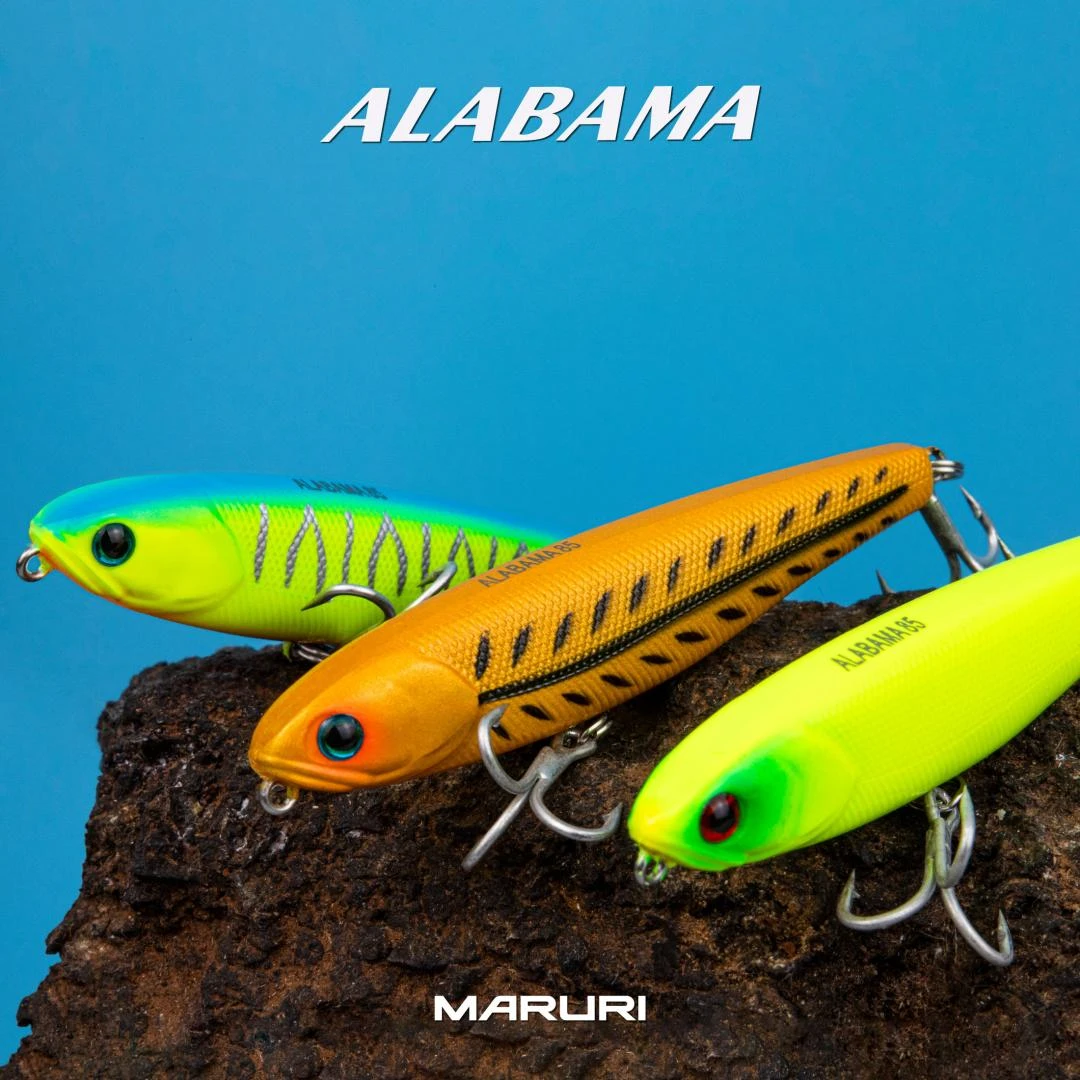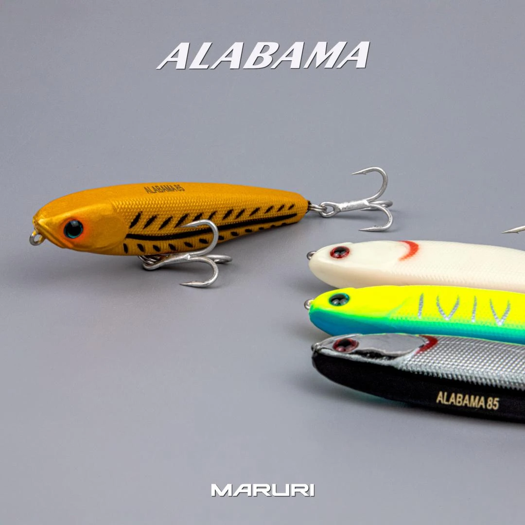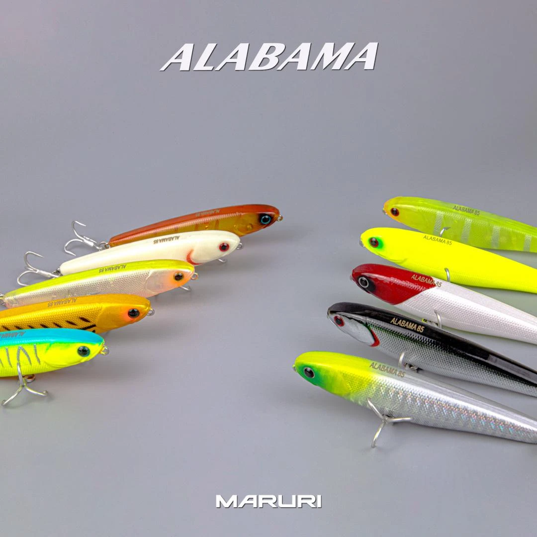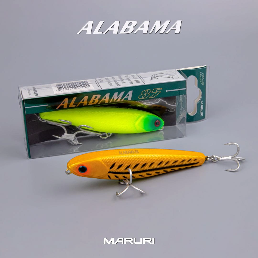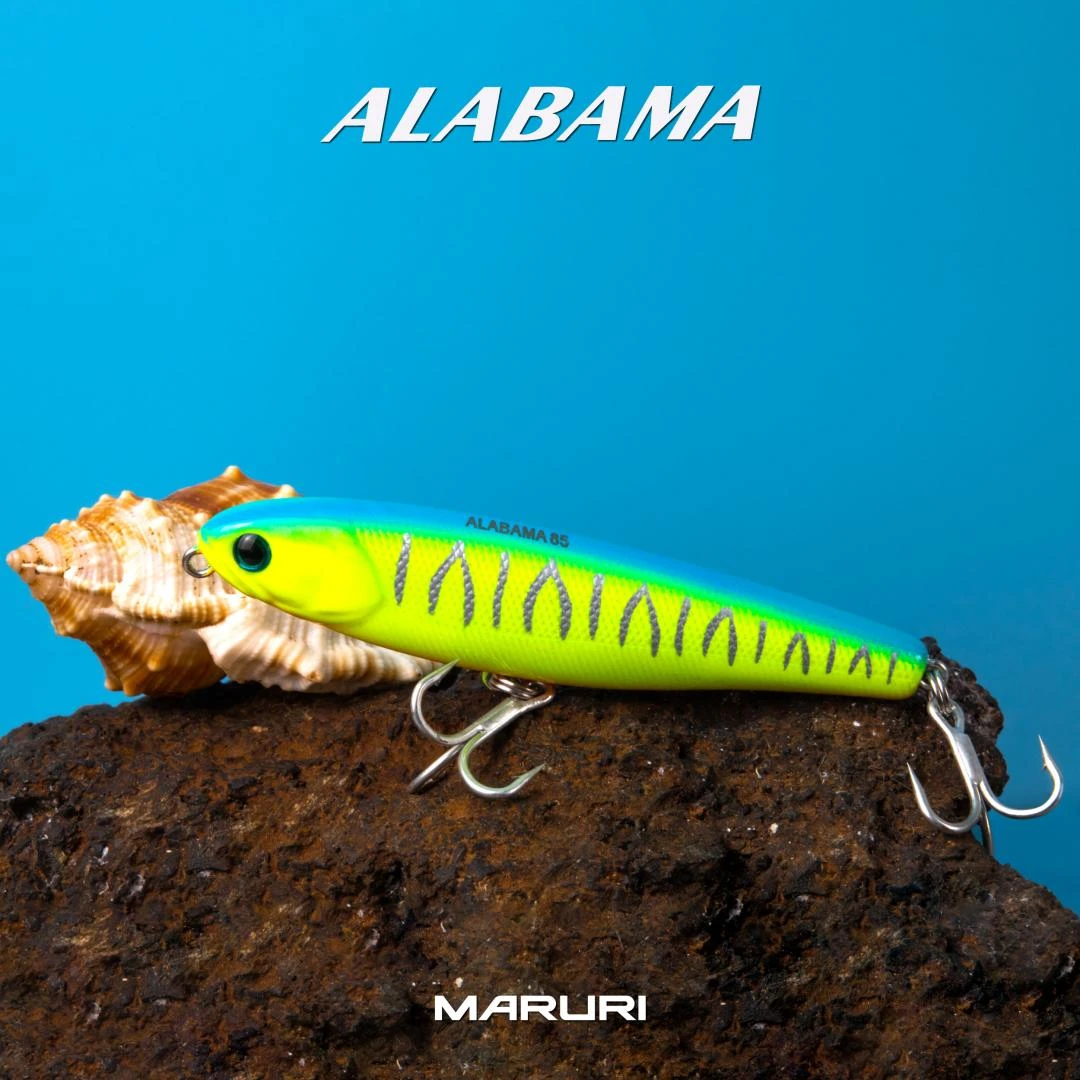 ALABAMA 9.5 e 8.5cm é uma isca de superfície com ação principal stick, mas
