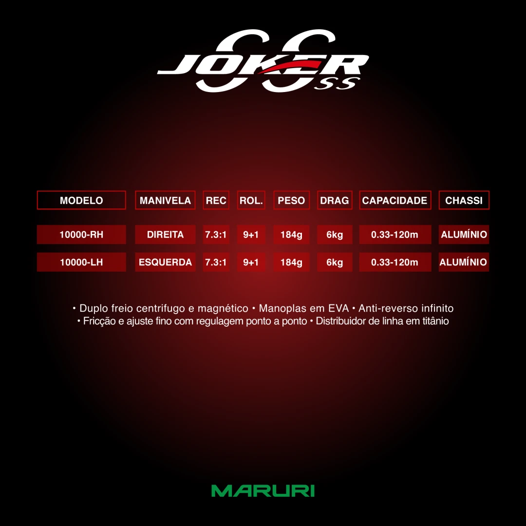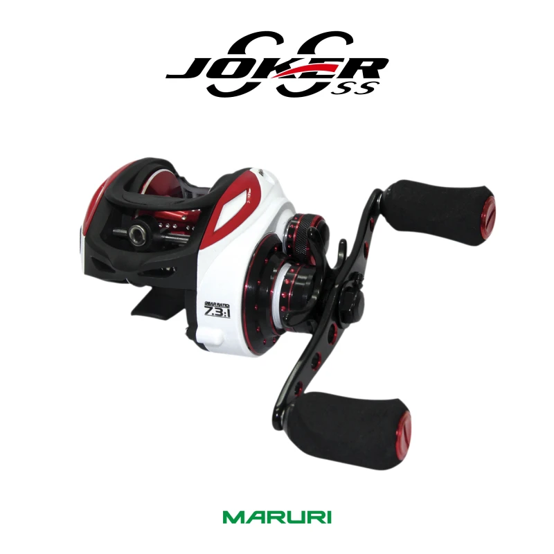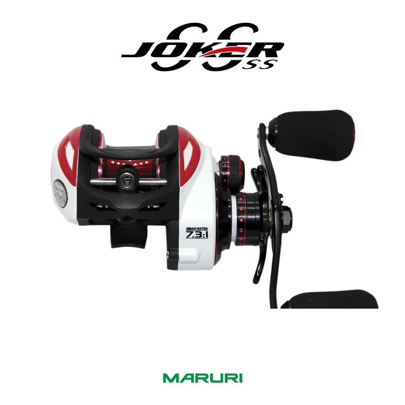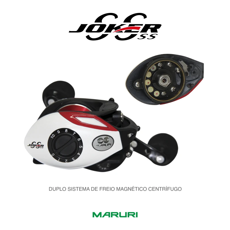 A Carretilha Joker da Maruri com sua estrutura em metal é também para peixes brigadores, rápida recolhe 7.3:1, leve apenas 184g, com boa capacidade de linha 0.30-120m.