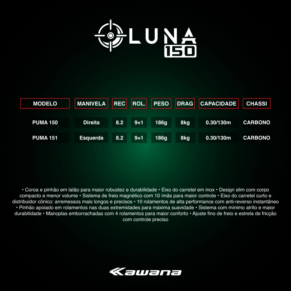 8445 | Kit 20 pçs LUNA 150/151 - 8.2:1 - 186g - Carretilha KWN
