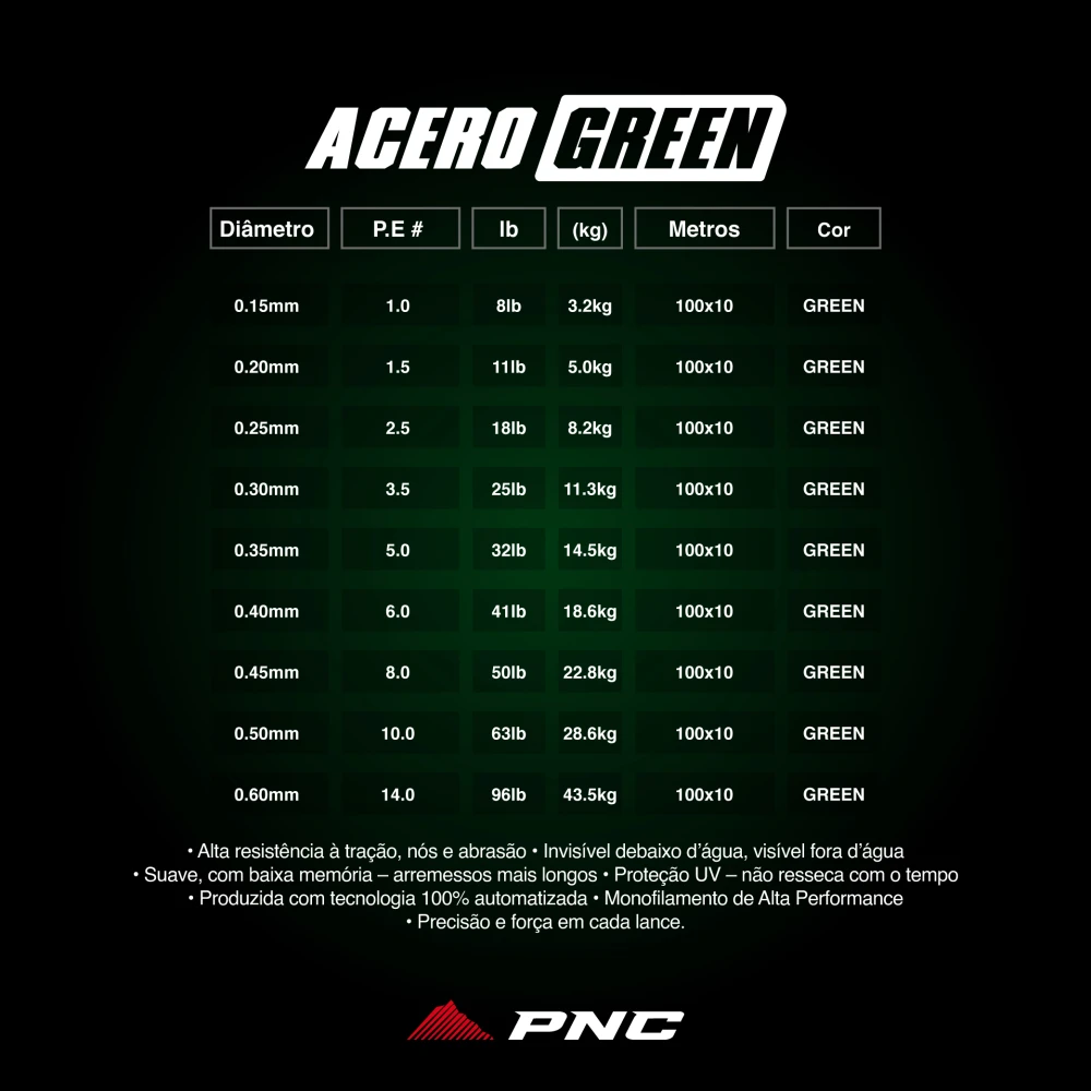 192124 | Linha PNC Acero GREEN 100m CAIXA de 0.15 a 0.60mm