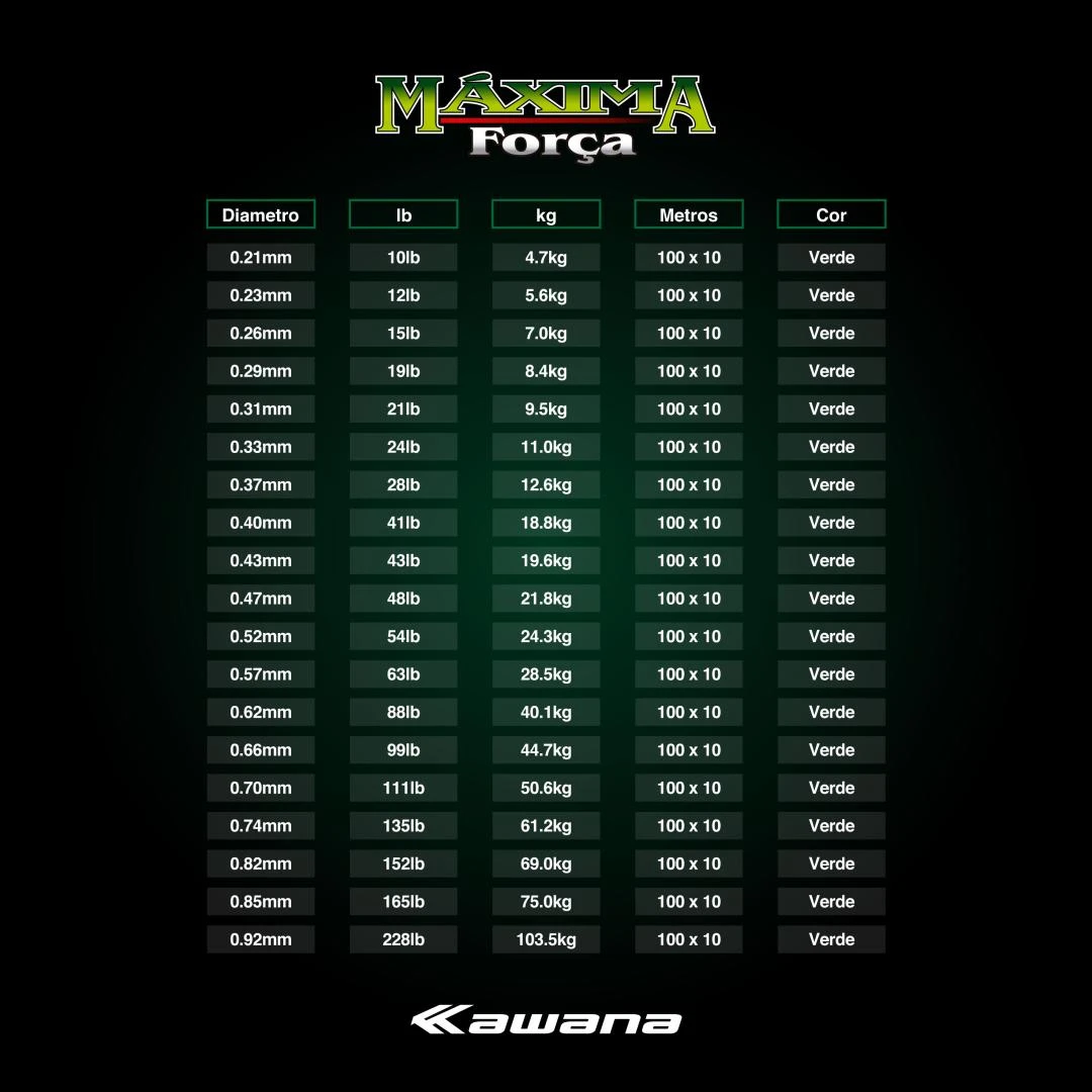 181862 | Lh MÁXIMA FORÇA verde -100m -10pç #0.26 # 2.5