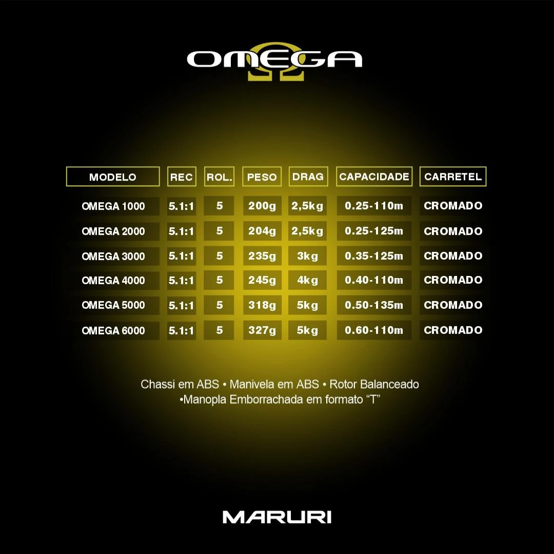 O molinete OMEGA tem um excelente custo x benefício, com estrutura em grafite, arco em alumínio e eixo em aço inox, carretel cromado para facilitar a saída de linha e melhorar o arremesso,