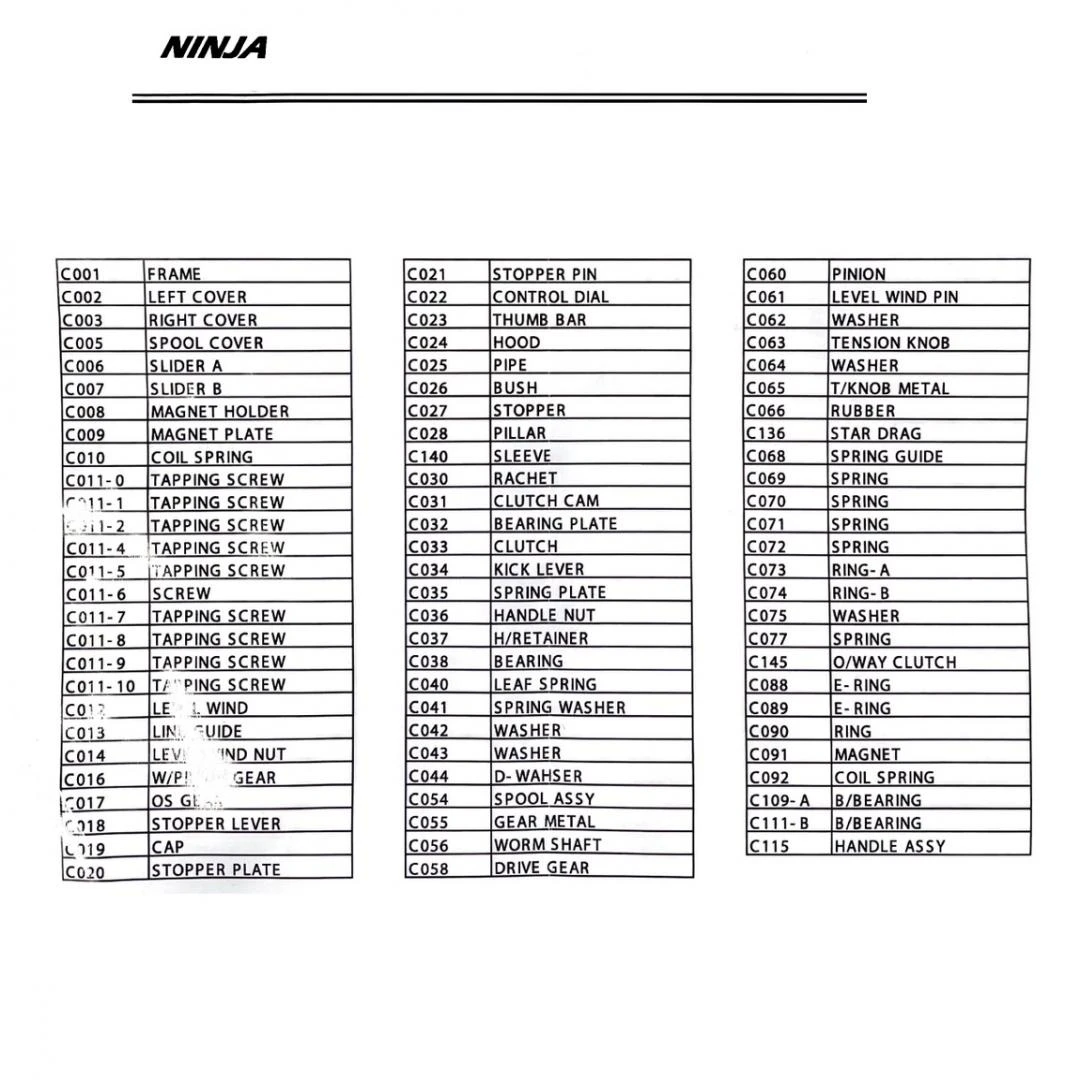 77967 | Peças Carretilha NINJA - ou Carretilha TNT
