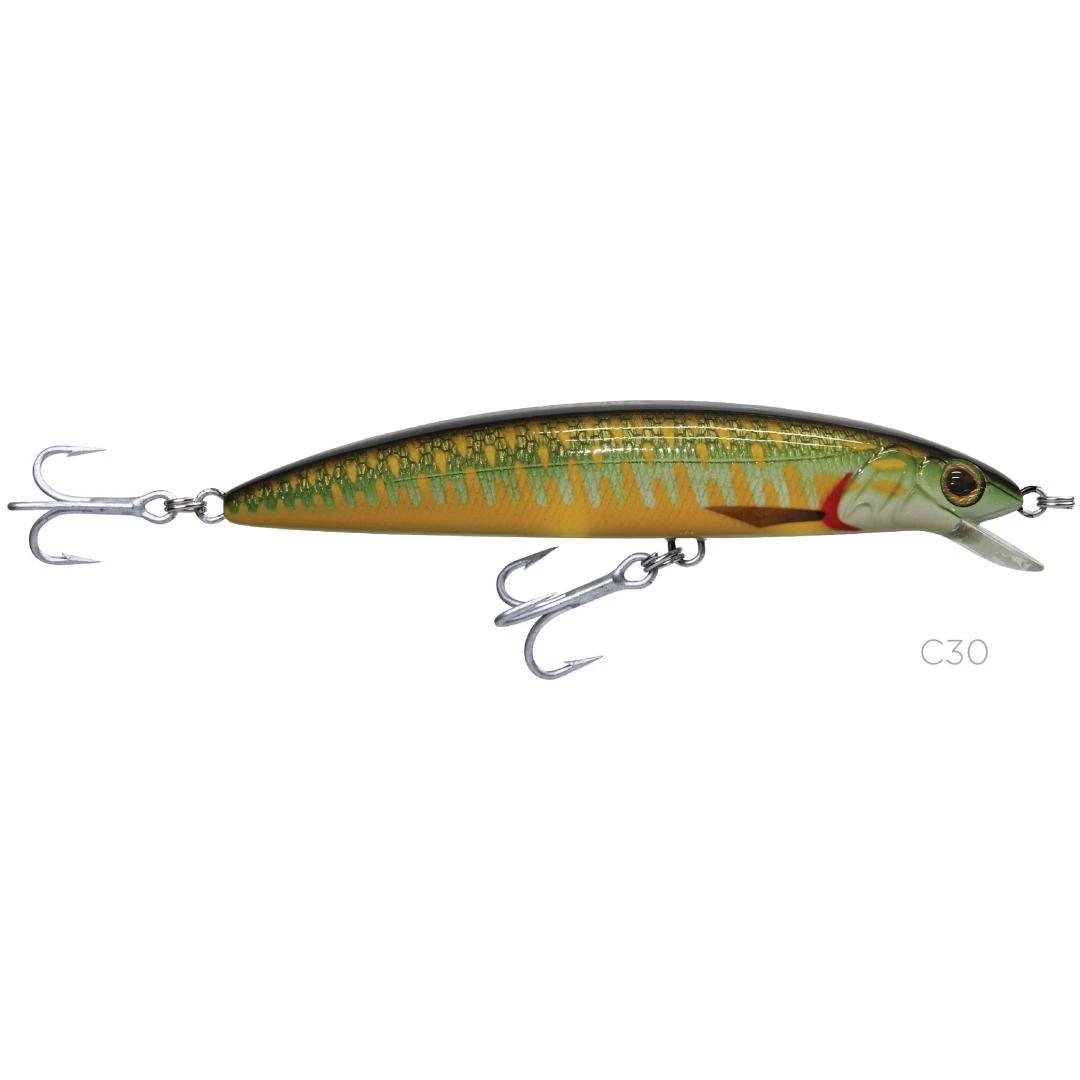 Isca de meia água Flutuante, com garatéias VMC Made In France, com uma arame de aço inox que percorre todo corpo unindo todos os pitôes, deixando -a muito resistente.