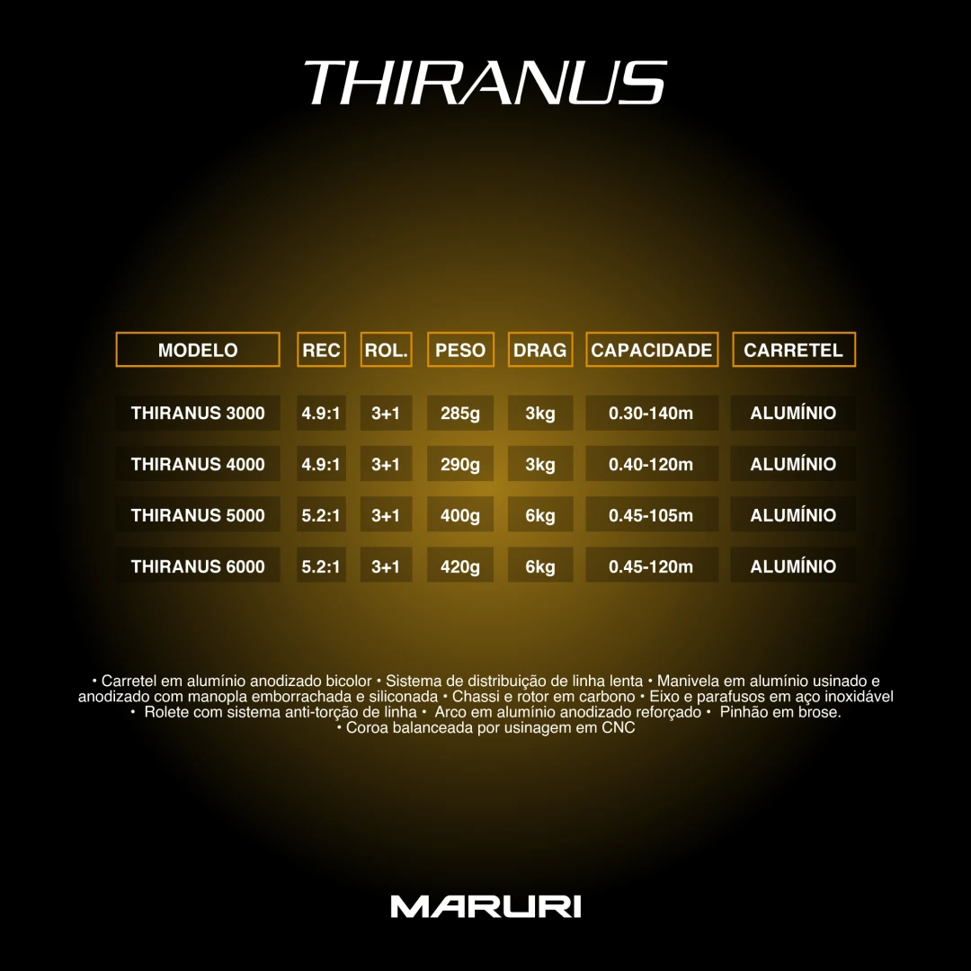 O THIRANUS é a escolha ideal para pescadores que buscam um molinete que combina tecnologia avançada e design sofisticado para aprimorar suas jornadas de pesca.
