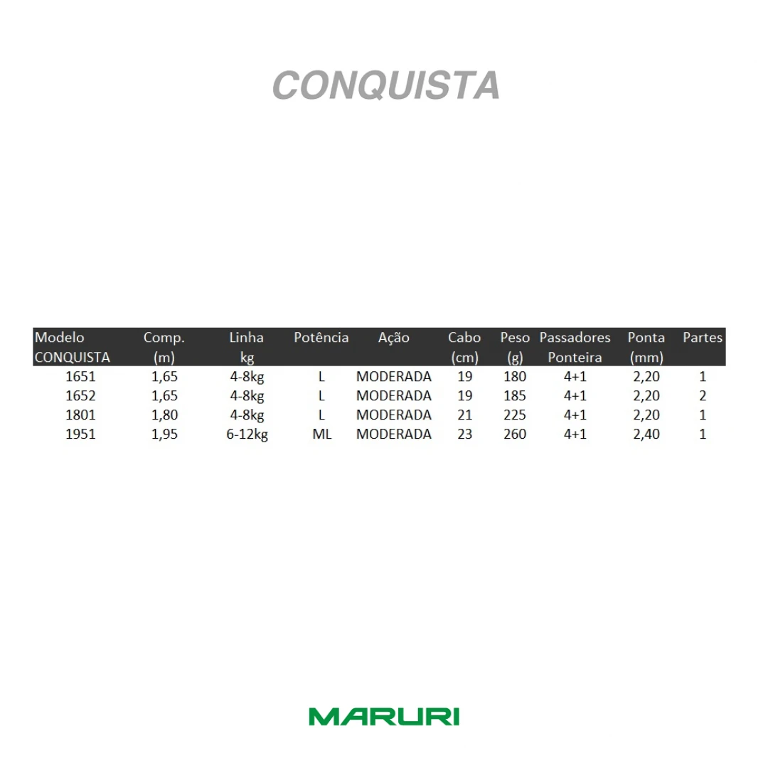 26221 | Vr mça Conquista - 1,65m - linha 4-8kg -#1651